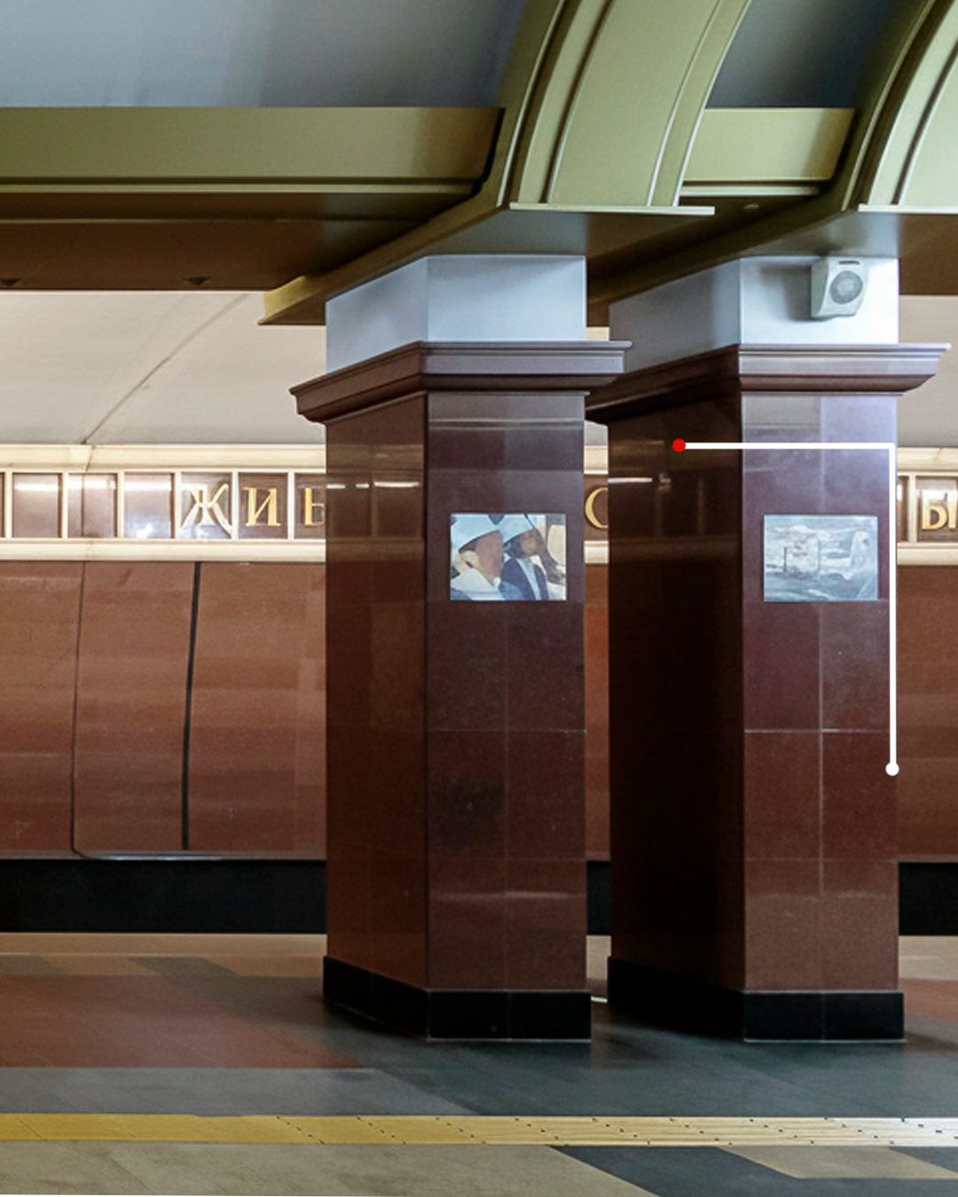 Идея разместить фотографии на станции хорошая, она понятная и близкая, но плохо реализованная. Иллюстрации очень высоко висят: среднестатистический рост мужчин в России 163 см, женщин 159 см — мало кто увидит эти фотографии, они расположены выше уровня головы среднего человека и довольно мелкие.