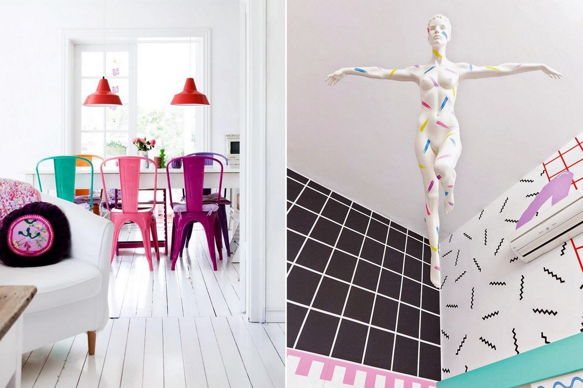 Дофаминовые детали, провокация, самоирония и высмеивание миллениальских (да ладно уж, стариковских) интерьеров — вот основной посыл. Округлые формы в мебели, коврах, декоре; массивность, геометрия, вдохновение работами Уорхола и продуманный беспорядок «Студии 54», упакованный в несочетаемые цвета. Кич, кричащий о поиске себя: едва ли в таком буйном цвете можно прожить всю жизнь не мучаясь мигренью, но для поиска своего собственного вкуса и настроения это прекрасный старт. К тому же для воплощения настолько смелых дизайнерских решений больше подходит съёмное жильё.