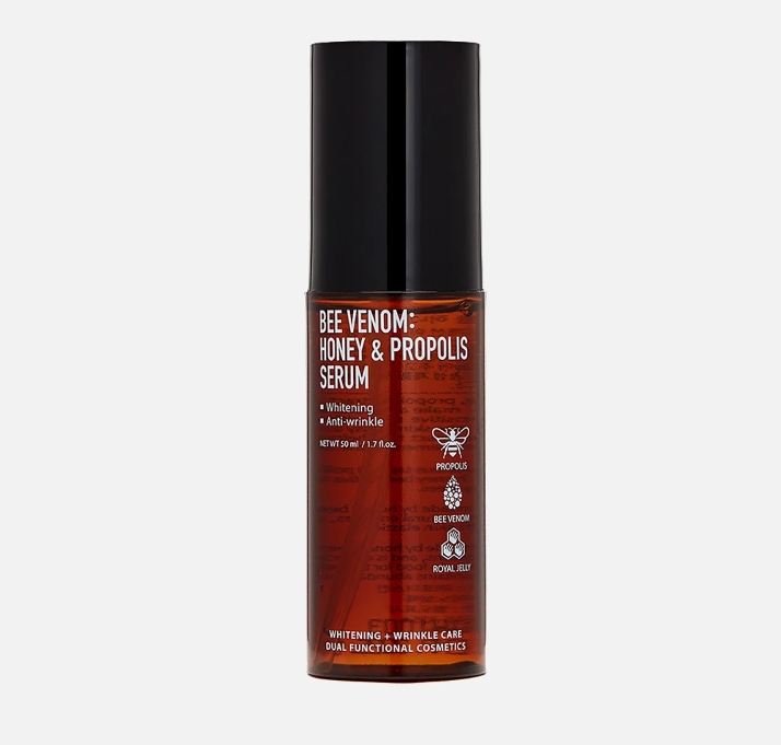 Эта сыворотка для лица содержит пчелиный яд, мед и прополис. Эти ингредиенты способствуют укреплению кожи, делают ее более упругой и уменьшают видимость мелких морщинок. Мед и прополис обладают бактериальными и заживляющими свойствами, а пчелиный яд стимулирует выработку коллагена.