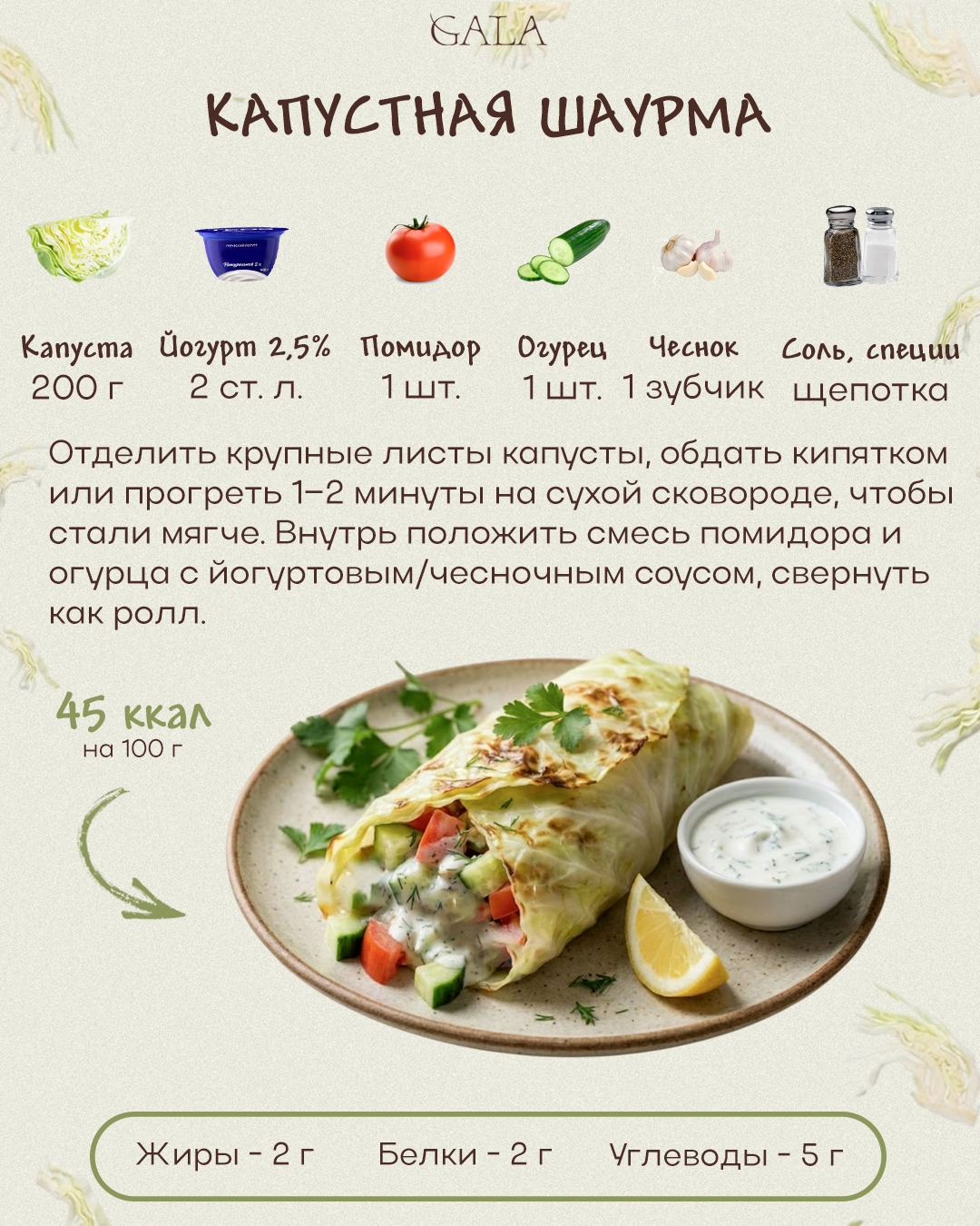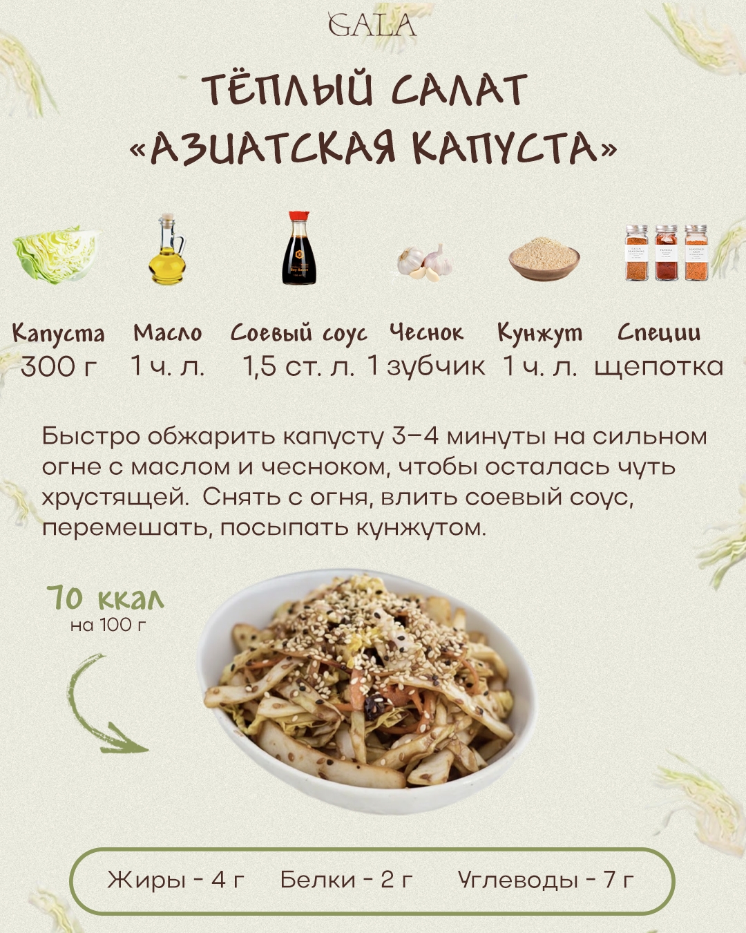 Похоже, про авокадо-тосты придется забыть. Vogue объявил, что теперь в моде капуста, и она будет везде. Уже сейчас многие заведения вводят в свои меню различные вариации блюд из капусты — от фрешей до стейков. И да, полезную белокочанную можно сделать действительно вкусной. Собрали примеры простых блюд с этим овощем и расписали КБЖУ каждого на 100 грамм. Всего 15 минут — и легкий ужин готов.