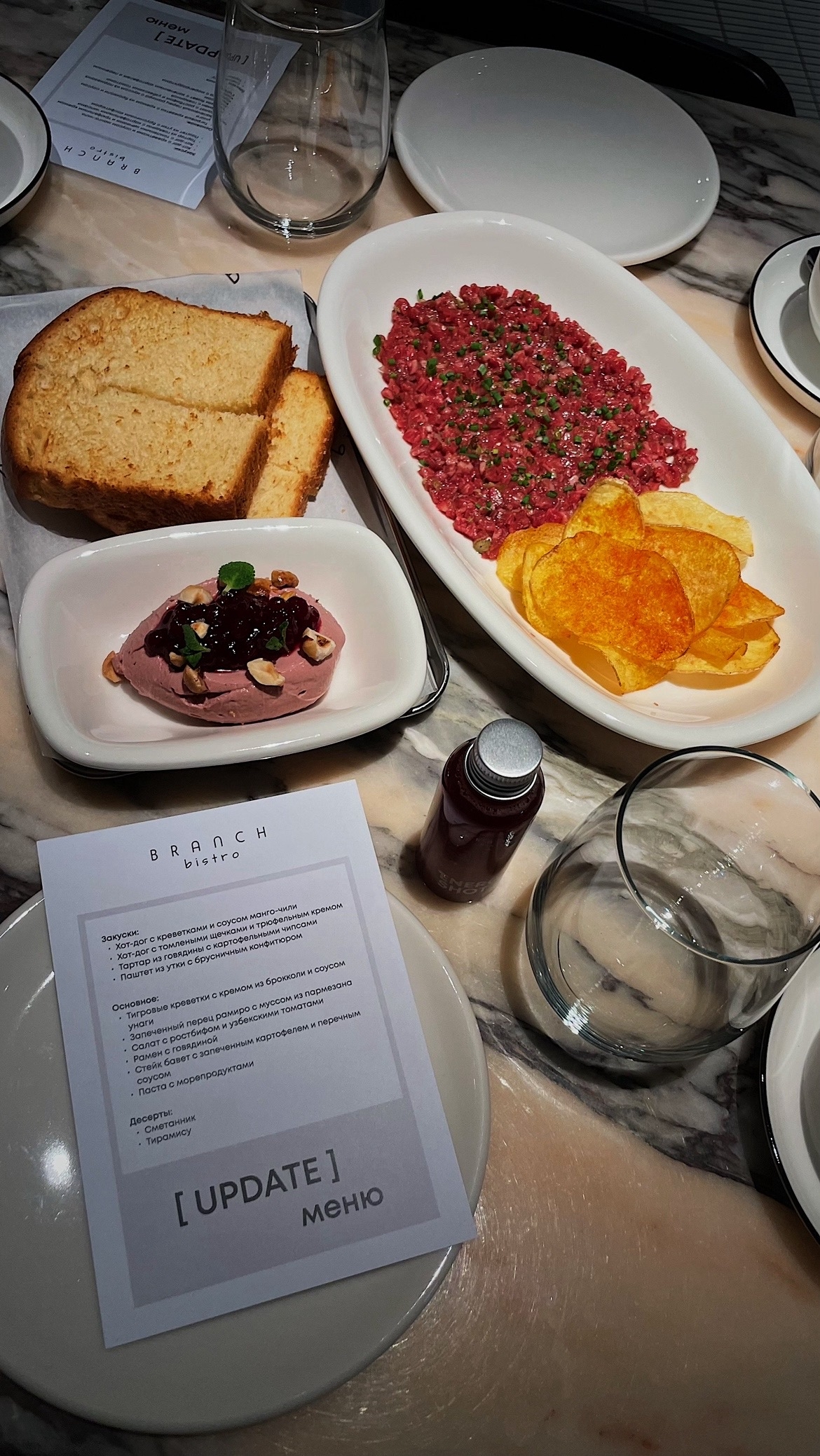 В BRANCH bistro уже действует обновленное меню, в котором больше 20 позиций. Его авторы - бренд-шев BRANCH Group Даниил Сурин и шеф-повар BRANCH bistro Владислав Шерстобитов, которые любят играть с небанальными вкусовыми сочетаниями. Заведение открылось всего полгода назад, но стартовый набор блюд казанцы не очень поняли — был запрос на «упрощение». По словам Даниила Сурина, теперь меню действительно проще, но, на мой взгляд, сложность по сравнению с привычной для города едой осталась.