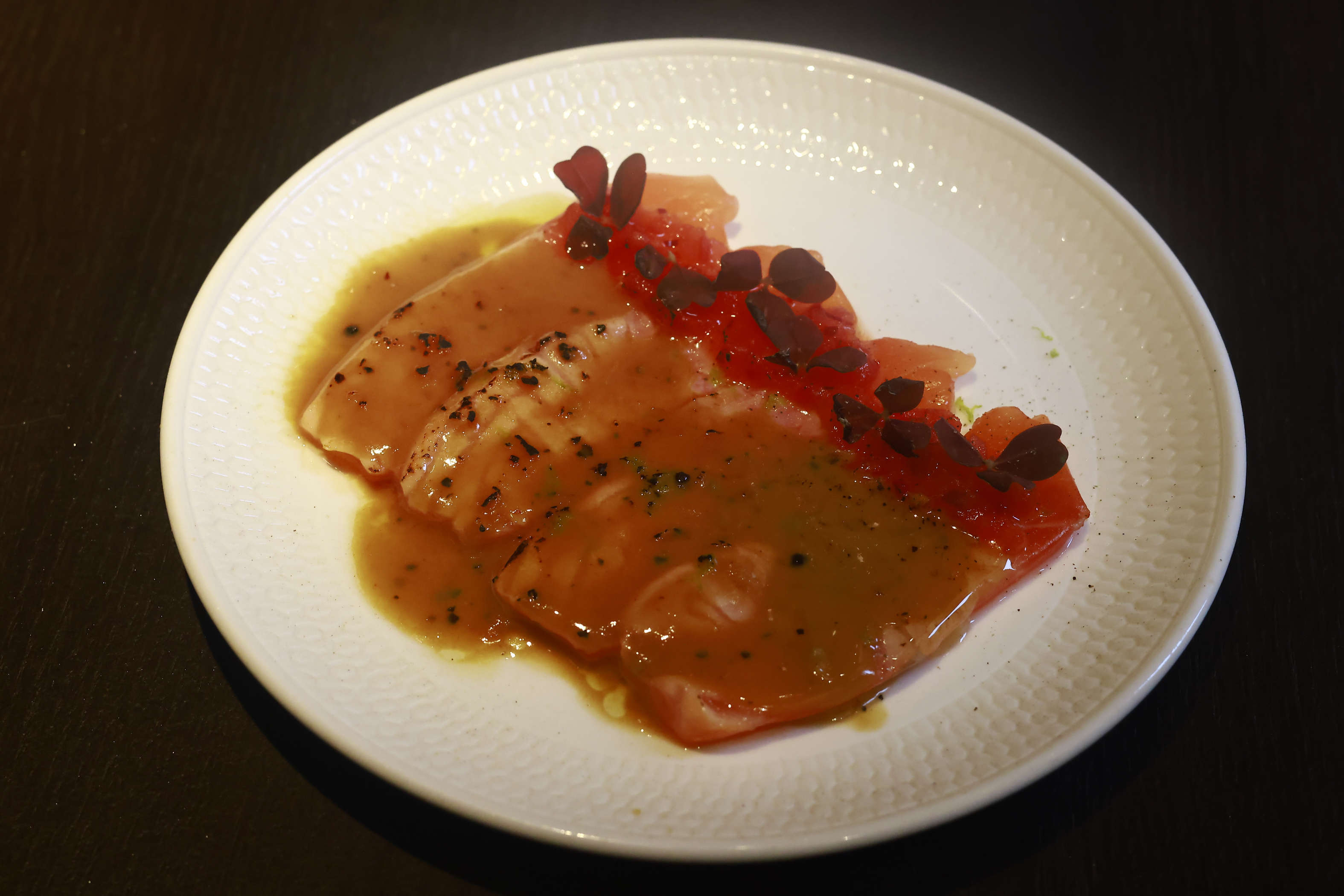 И рыба в исполнении Томаса - действительно то, что должен попробовать каждый. Его фирменное блюдо — татаки. Это слегка маринованный лосось, политый перуанским соусом сатай из жёлтого перца чили, который привезен из Перу. Подается рыба с пико-де-гайо — томатной сальсой и свежим щавелем. В самом соусе много горошин черного перца, поэтому после того, как Томас их поджарит горелкой, появится приятный аромат. У татаки интересная подача: за счет огня, который кроме производимого на гостя эффекта еще и влияет на вкус. Получается с одной стороны поджаренная рыба, а с другой — сырая, и это очень приятное сочетание текстур. А соусы дают немного сладкий и слегка острый привкус. Да, такое блюдо точно стоит попробовать хотя бы раз в жизни.