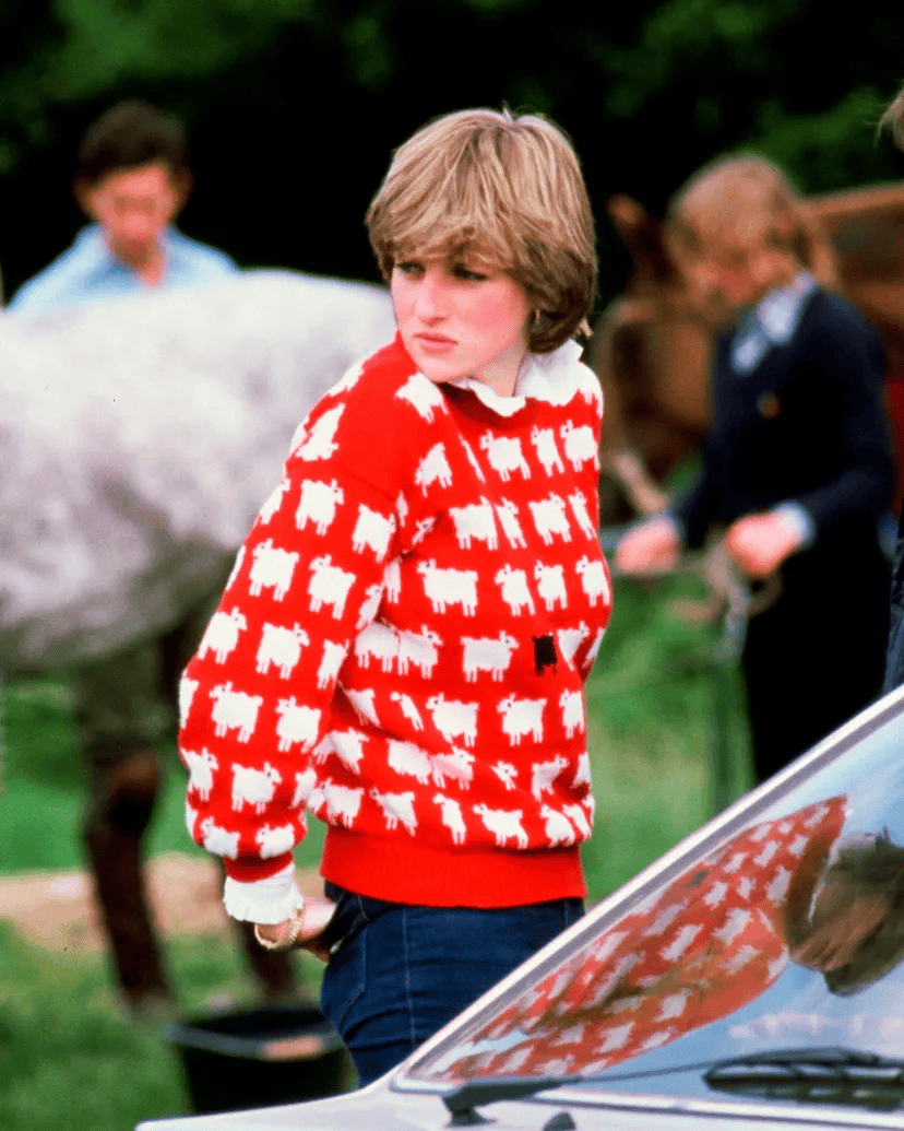 Эрика (сестра Лукаса) совсем выросла. И в ее образе заложена одна из самых интересных отсылок – на свитер принцессы Дианы. Принт состоит из множества белых овечек и одной черной, которая символизирует ее состояние в королевской семье. В народе образ прозвали «Паршивой овцой». Кстати, в 2023 году бренд выставил тот самый свитер на аукцион и продал за 1,14 миллиона долларов. У Эрики вместо овечек – шотландские терьеры.