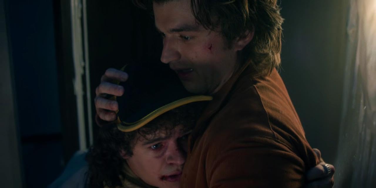 Весь образ Дастина строится из тоски по Эдди, своему близкому другу из четвертого сезона. Герой носит футболку Hellfire Club и кольца, как это делал его старший товарищ. Кепка – обязательный атрибут образа Дастина. Но если в предыдущие годы они были радужные, яркие, то сейчас довольно темная, подчеркивающая траур.