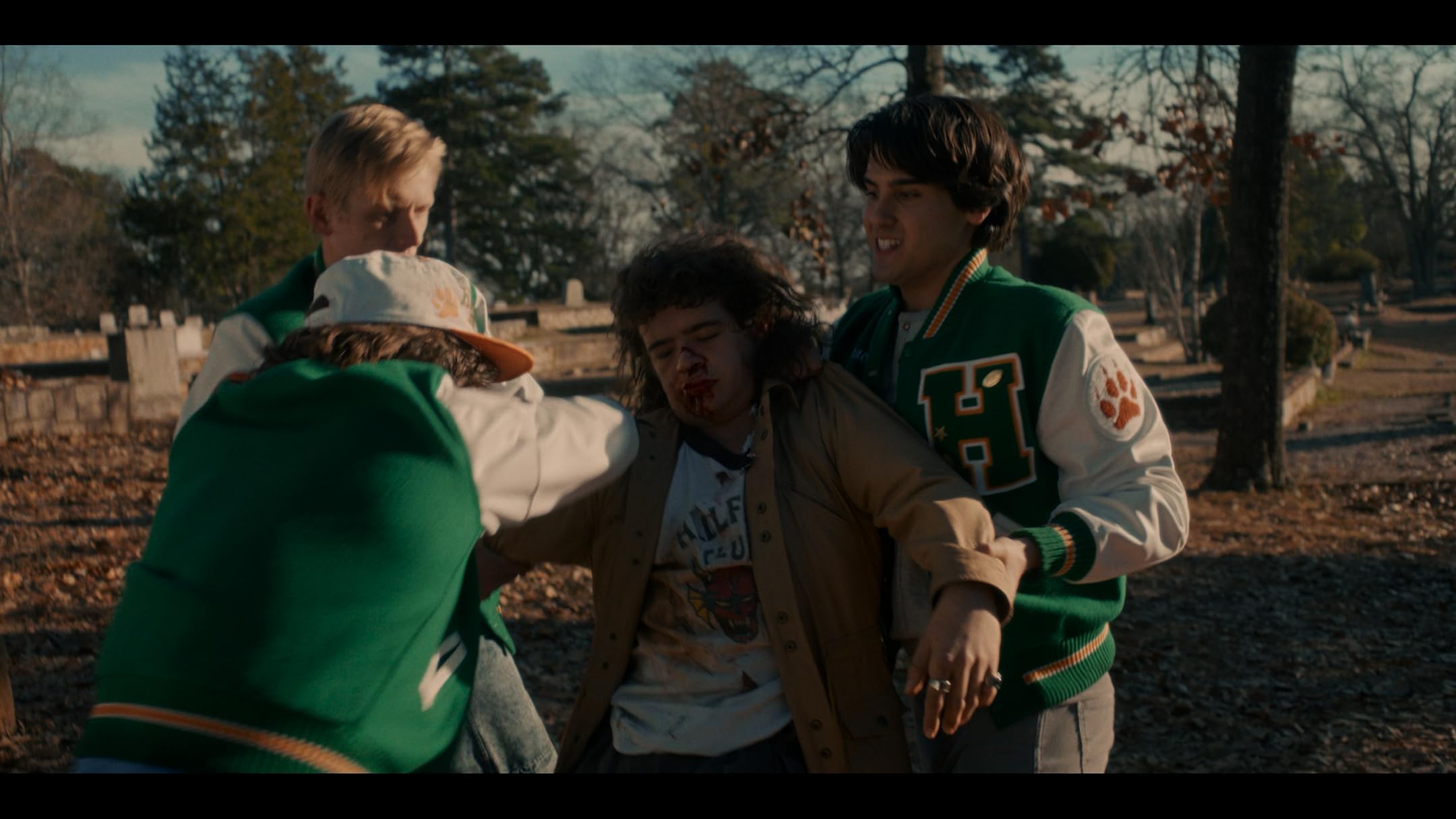 Помните ту самую легендарную сцену с Уиллом, где он раскидывает Демогоргонов? Для этой сцены он был в рубашке, которая подчеркивает его силу и властность: за счет образованной рукавами полосы, идущей от плеча к плечу. Вообще Уилл на протяжении всех сезонов носит жилетки, рубашки, пиджаки, куртки. Этого придерживались и в последних сериях. Но для самой откровенной сцены для персонажа (да-да, той самой, где он признаётся) он снял куртку и рубашку, чтобы оказаться в максимально уязвимом положении.