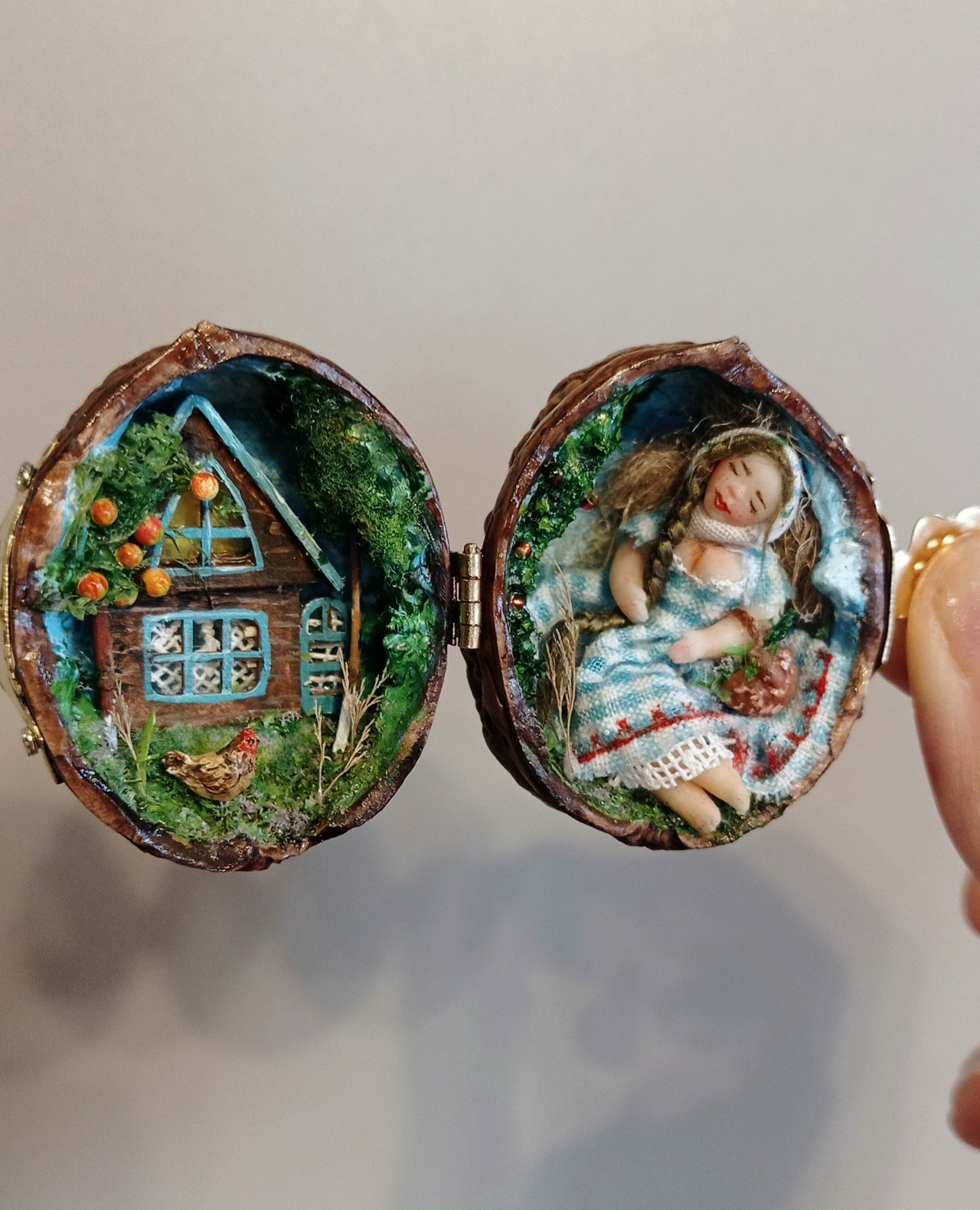 Герои сказок сошли со страниц книг и оказались… в скорлупе грецкого ореха. Такой необычный сувенир можно увидеть в магазине «Душа ореха». Мария Чикова – художник, бутафор, декоратор, который создает такие милые миниатюры.