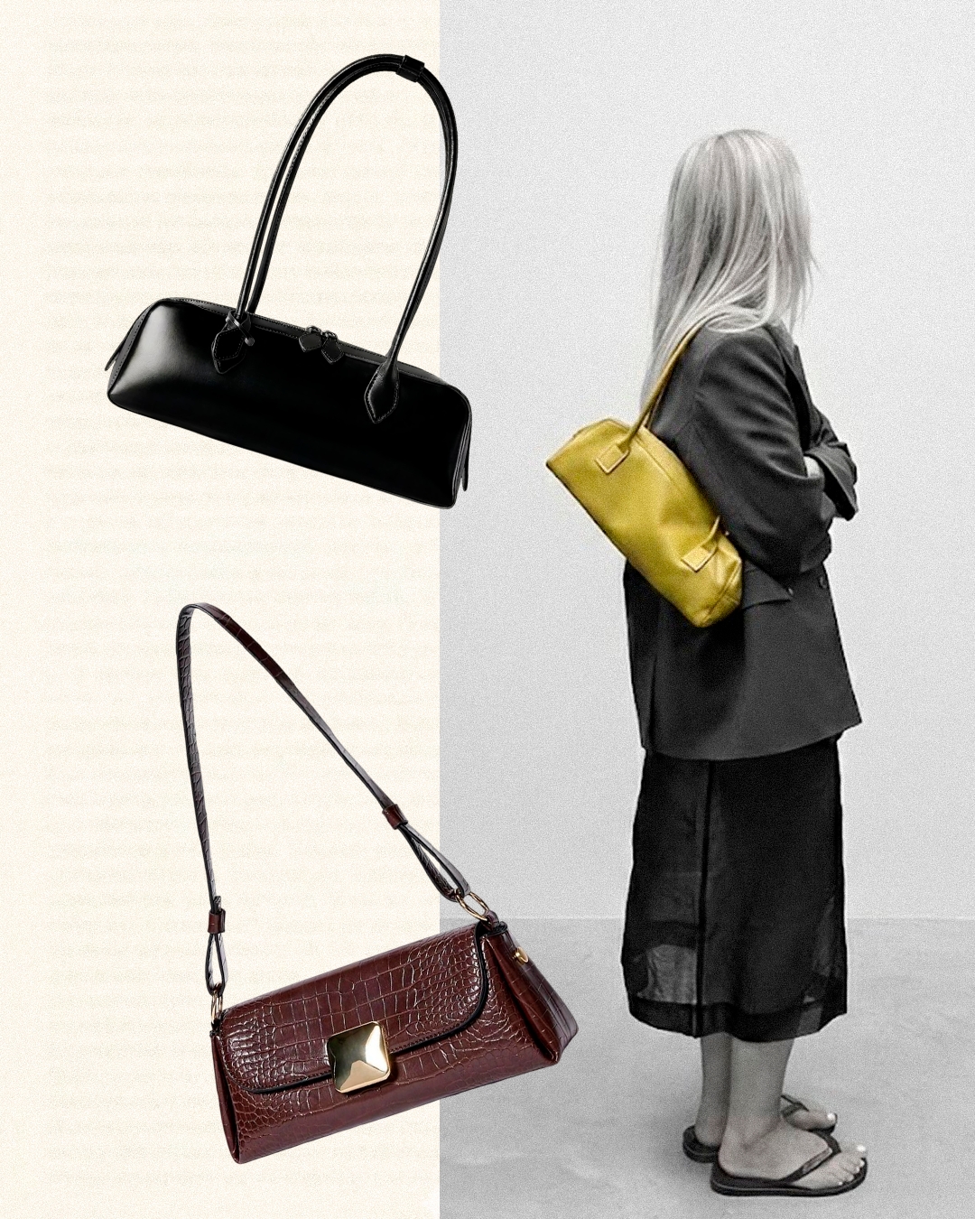 Сумка в форме французской булки сегодня не просто популярна, а жизненно необходима каждой моднице. С ней любой образ заиграет новыми красками вне зависимости от того, какой характер передает ваш лук. Она сочетается как со спортивной историей, так и с более женственной, где в основе лежит летящая юбка или платье. Багет удобно носить на плече за счет практичной жесткой ручки, поэтому он будет особенно уместен в городе, когда хочется, чтобы руки были свободными.