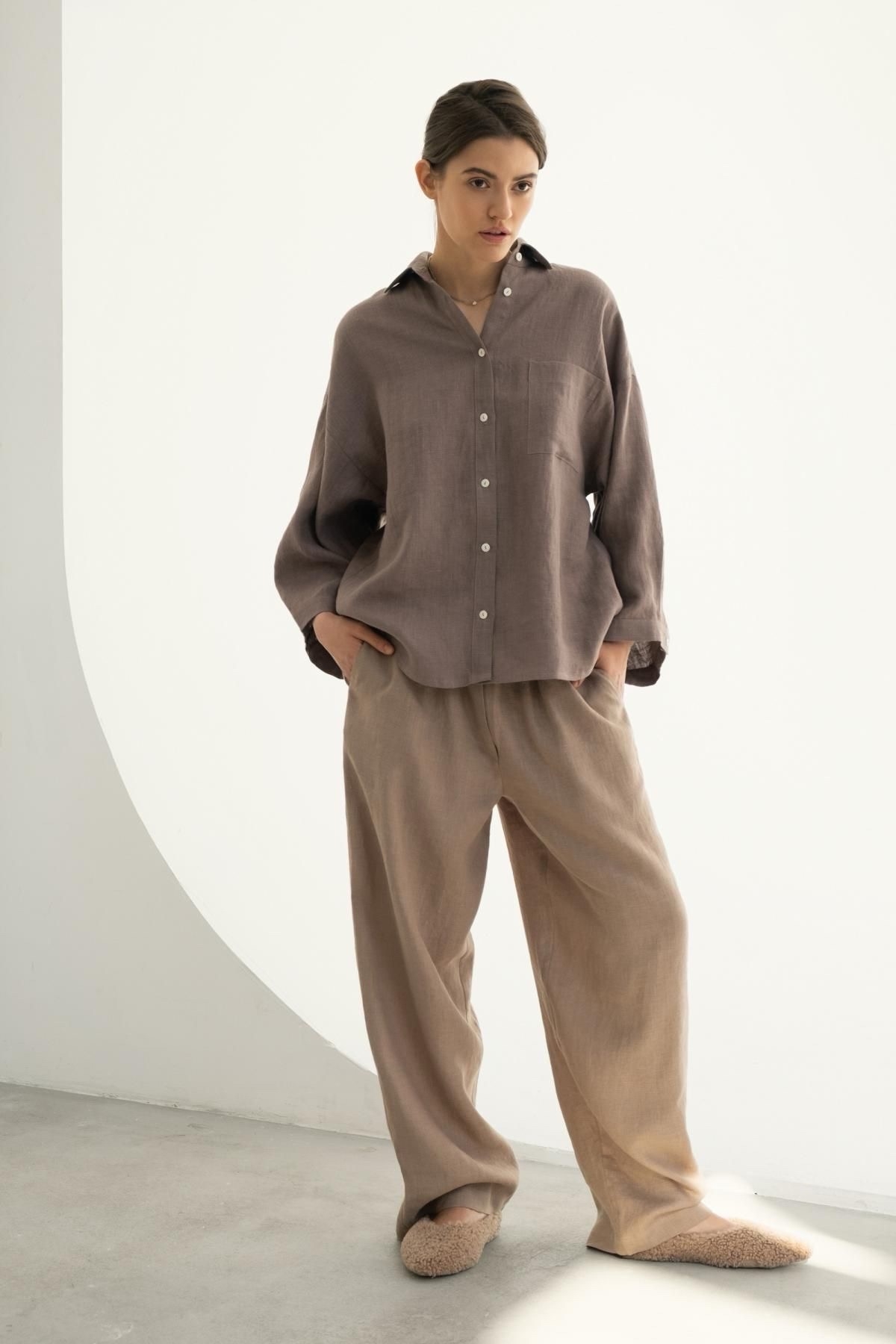 В вашем гардеробе уже есть льняные брюки, пора подумать о рубашке. Можете взять этот комплект одного цвета, чтобы носить вместе или же выбрать рубашку в светлых тонах, чтобы она подошла под любой низ. Такая одежда смотрится и с юбками, и с шортами, и с джинсами, а некоторые носят рубашки и поверх платьев.