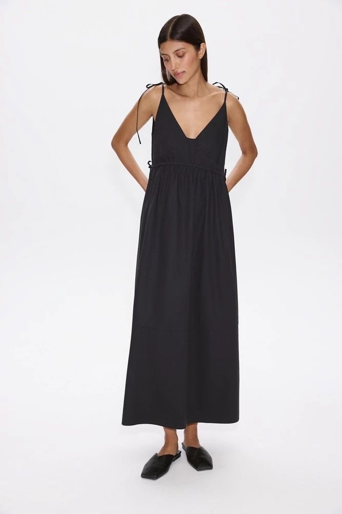 Хит этого сезона, который можно носить и в городе, и на отдыхе, если вдруг собираетесь на каникулы. Под него подойдут и аккуратные балетки, и кроссовки, и вьетнамки, и даже кроксы. Сарафан умело подстроится под любую одежду и превратится как в пляжный лук, так и в вечерний, в зависимости от обуви, которую вы выберете.