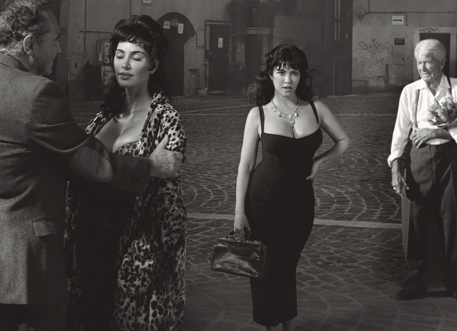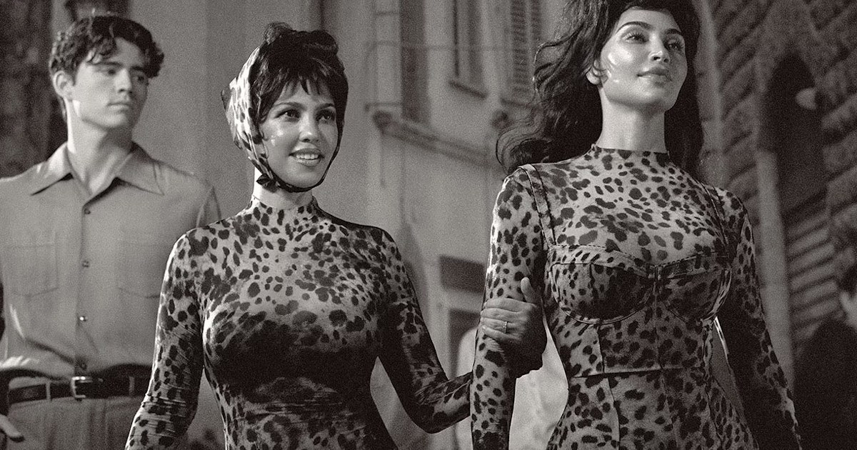 Dolce & Gabbana: ограниченная коллекция с легендарными принтами DG, где итальянский пафос (пике леопарда, роскошные силуэты) встречается с комфортом SKIMS. Суперзвёздный момент кампании: после семейного скандала, которые, скажем прямо, свойственны семье Кардашьян, Ким и её сестра Кортни впервые вместе снялись в элегантных образах D&G, приглашая ностальгировать по кино 60–70-х.