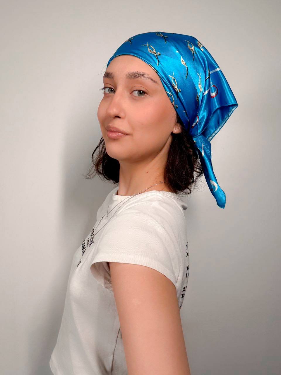 То, что платок как по волшебству не закрепляется на голове, заставляет опустить руки. Используйте невидимки и силиконовые держатели. Платок слегка приподнимайте у корней волос. И продублируем: выбирайте натуральные ткани. Желательно избегать скользких материалов: это усложнит фиксацию.