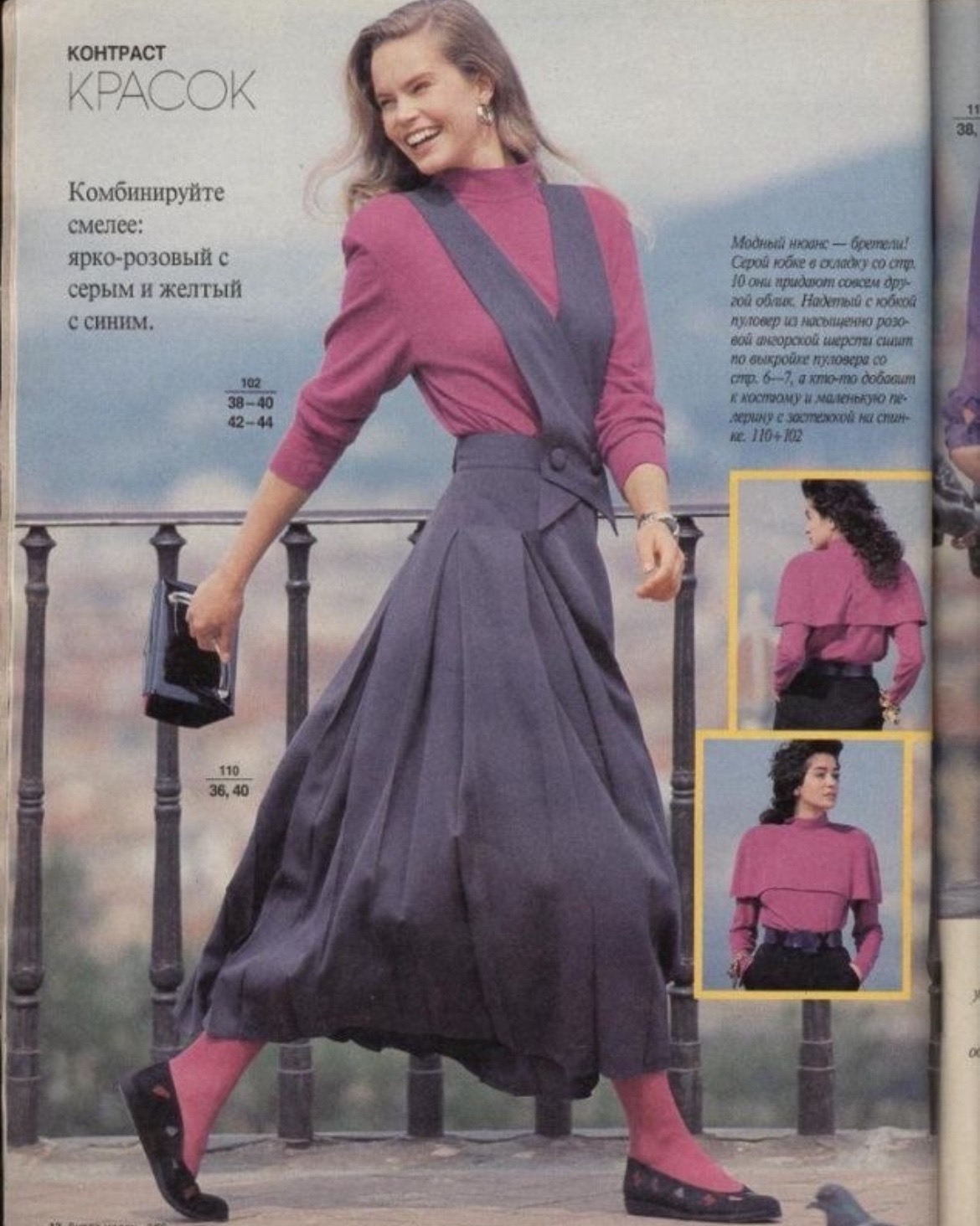 То, что когда-то было модно, сейчас сочетается с атрибутами уличной моды. Например, такую вещь можно надеть с джинсами и кроссовками. Или, например, юбки из прошлого века модно носить с современными топиками или свитерами — тогда они не будут выглядеть как привет из 90-х.