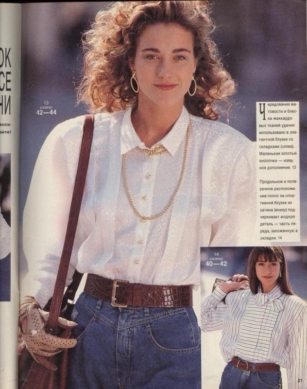 Старые свитеры сделаны из теплой пряжи крупной вязки и часто украшены этническими узорами. Эти вещи очень удобные и подходят для повседневной носки. Их можно надеть поверх современного топа или футболки с джинсами — и получится отличный лук. Конечно, не забывайте о сегодняшней моде на оверсайз. Если вдруг в шкафу у родственников есть объемный и теплый пуловер, хватайте его — он еще и практичный.