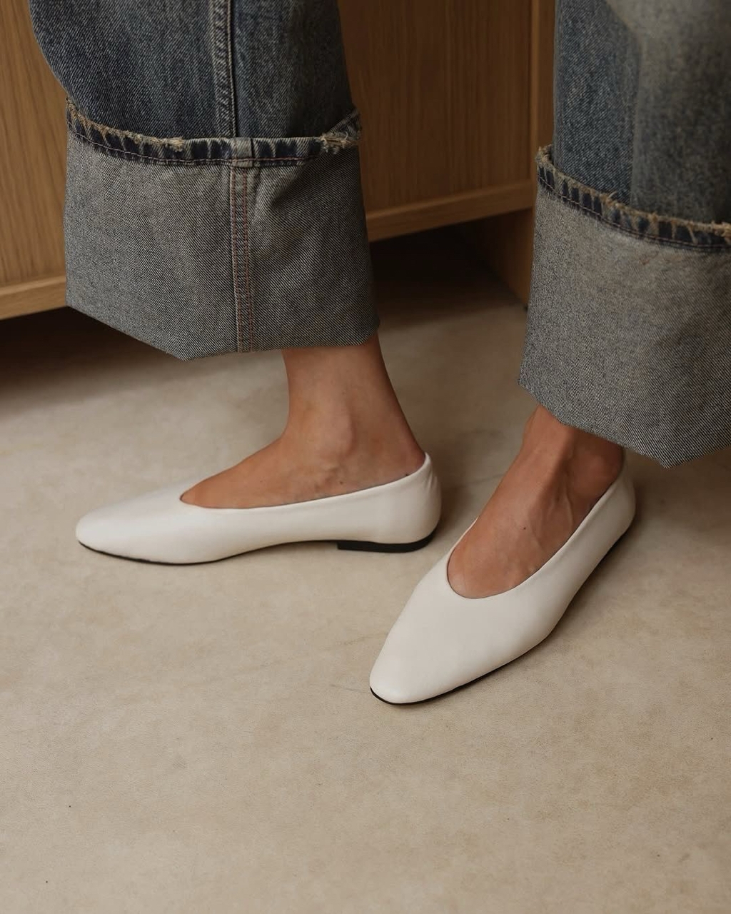 Весной 2026 актуальны балетки из мягкой кожи. Они выглядят более расслабленно и современно, а благодаря гибкой форме комфортно сидят на ноге. Обратите внимание на минималистичные модели без лишнего декора. Они смотрятся изящно и дарят образу легкость.