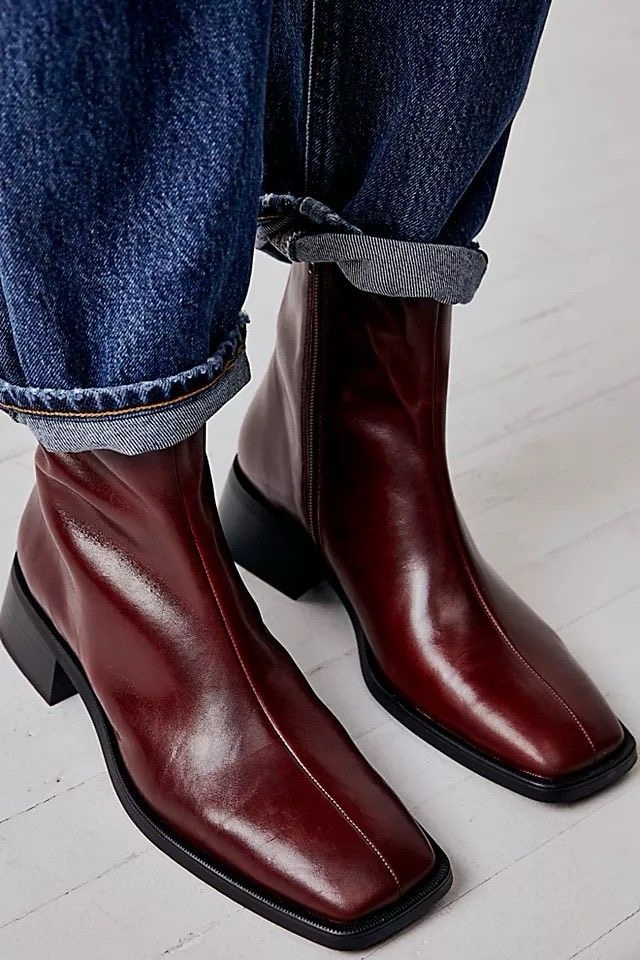 Если хочется добавить в свой визуальный код структуры и графичности, то смело выбирайте обувь с квадратным мысом. Этот горячий тренд сразу делает образ собранным. Фигурный мыс отлично смотрится и в деловых луках с жакетами или жилетками, и в расслабленных образах с джинсами и кардиганами. А сумка жесткой формы и массивные аксессуары станут здесь красивым завершающим штрихом.