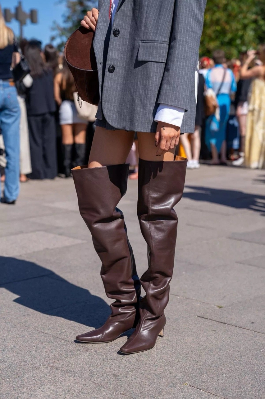 Ботфорты проживают свою новую эру. В топе как обтягивающие варианты, так и те, у которых есть выраженное широкое голенище. Важный нюанс: подошва у такой модели сапог сегодня должна быть тонкой и аккуратной, тогда это будет смотреться стильно и современно.