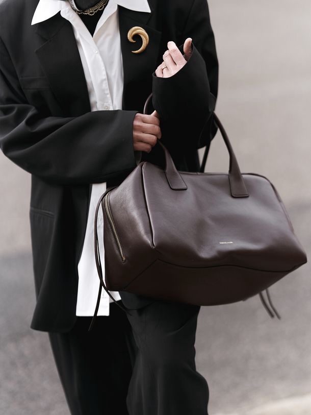 Если бы сумка могла быть личным помощником, то из всех лучше выбрать тоут. Эта вместительная и при этом абсолютно современная сумка создана для сумасшедшего городского ритма. Туда поместится всё: от ноутбука и кипы документов до пары осенних яблок с бабушкиной дачи. Тренд сезона — мягкие формы и натуральные материалы. Кожа в нейтральных оттенках: бежевый, коньячный или чёрный, а еще – минимум декора. Если разгорится желание помодничать, можно сыграть на контрастах и взять, например, тоут с необычной текстурой или сдержанным принтом. Помните, что осенью-зимой — 2025 не стоит бояться больших размеров! Тоут формата XL не только суперпрактичен, но и визуально делает образ более расслабленным. Особенно эффектно такой вариант будет смотреться в дуэте с oversize-пальто и массивными ботинками.