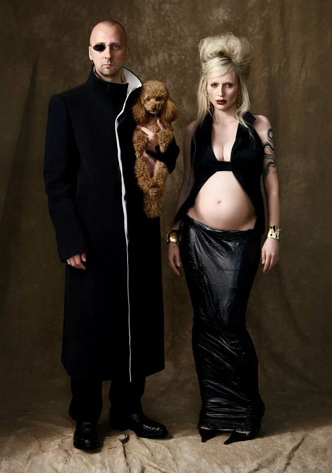 Вика Салават Купере – легенда российской «альтернативной» моды, и свою первую беременность она превратила в арт-процесс. На обложке модного глянца Sobaka она предстала в драматическом образе: белом корсете с объёмной юбкой и пугающе красивом головном уборе (крыло-перья) от художника Ильи Мигмуна. Такой костюм – пример смелой фешен-игры: он абсолютно нестандартен, но при этом блестяще выстроен по фигуре. Салават сама объясняет, что воспринимает беременность как fashion-перформанс. Сама стилист говорит, что «С одной стороны, это беременность-перформанс, где материнство и детство манифестируются как фешен-практика, а с другой — выход из пределов моды в повседневное и человеческое». Ее образ поднимает планку: даже «экстремальным» мамам доступно носить актуальные наряды с эффектными аксессуарами и выглядеть при этом безупречно. Советуем присмотреться к тому, как умело Вика работает с фактурами и текстурами.