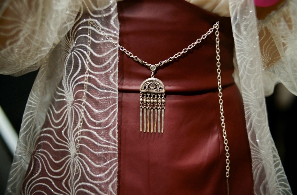 Второе имя, на которое я обратила внимание еще за кулисами, а сидя в первом ряду во время шоу смогла детально рассмотреть, - якутский бренд Soyol. Этот бренд женской одежды делает акцент на этническую моду. Женственные костюмы, тонкие ремешки с якутским орнаментом, длинные шаманские медальоны и колье, пиджаки с баской и юбки необычного кроя полюбятся многим московским модницам.