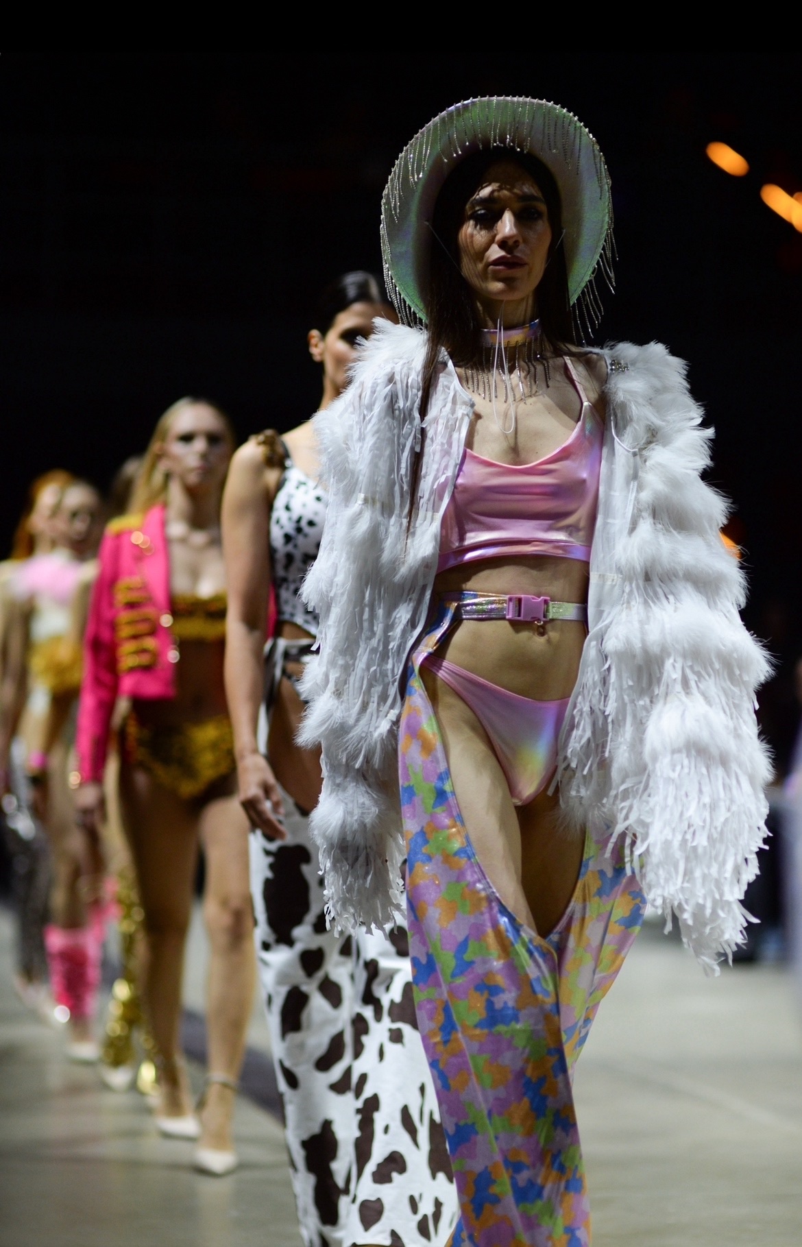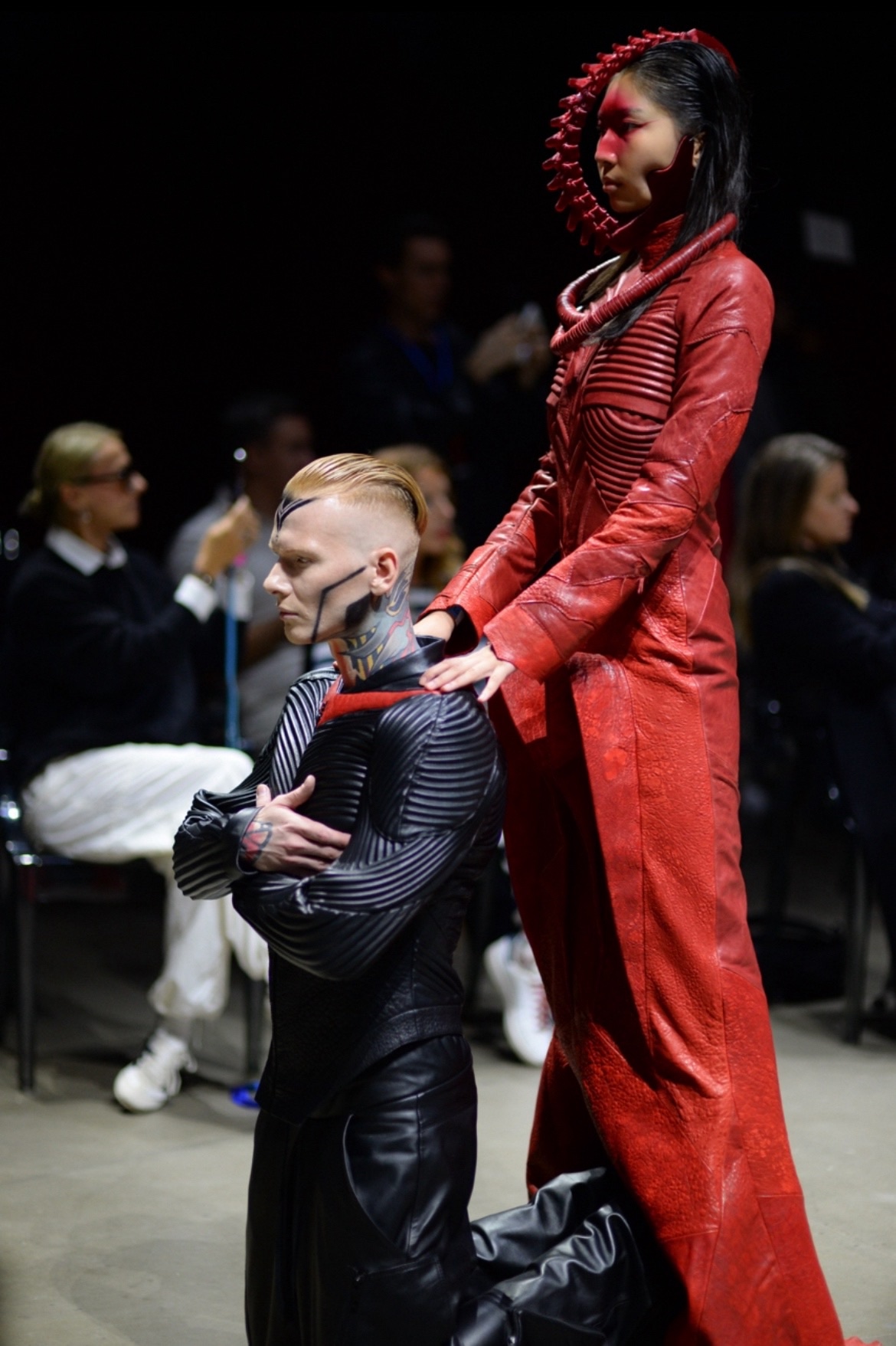 Если честно, выходы остальных брендов сразу погасли на фоне перформанса хедлайнера, хотя были очень интересные дизайнерские решения и альтернативные модные перевоплощения. Из моих фаворитов могу выделить три лейбла, на которые стоит обратить внимание.