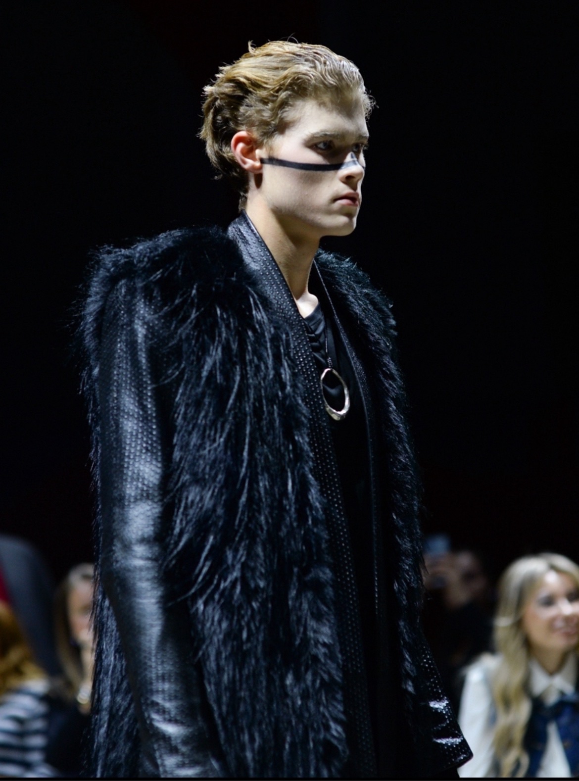 Под звуки электронной музыки и харизматичный голос ведущего Не-Дмитрия-Нагиева немногочисленным зрителям, попавшим на это шоу, хедлайнер конкурса бренд Dagon представил свою коллекцию «Новые миры». Наверное, именно этот выход, а также модели в гриме, которые попадались еще за кулисами до начала шоу, сформировали впечатление всего вечера.