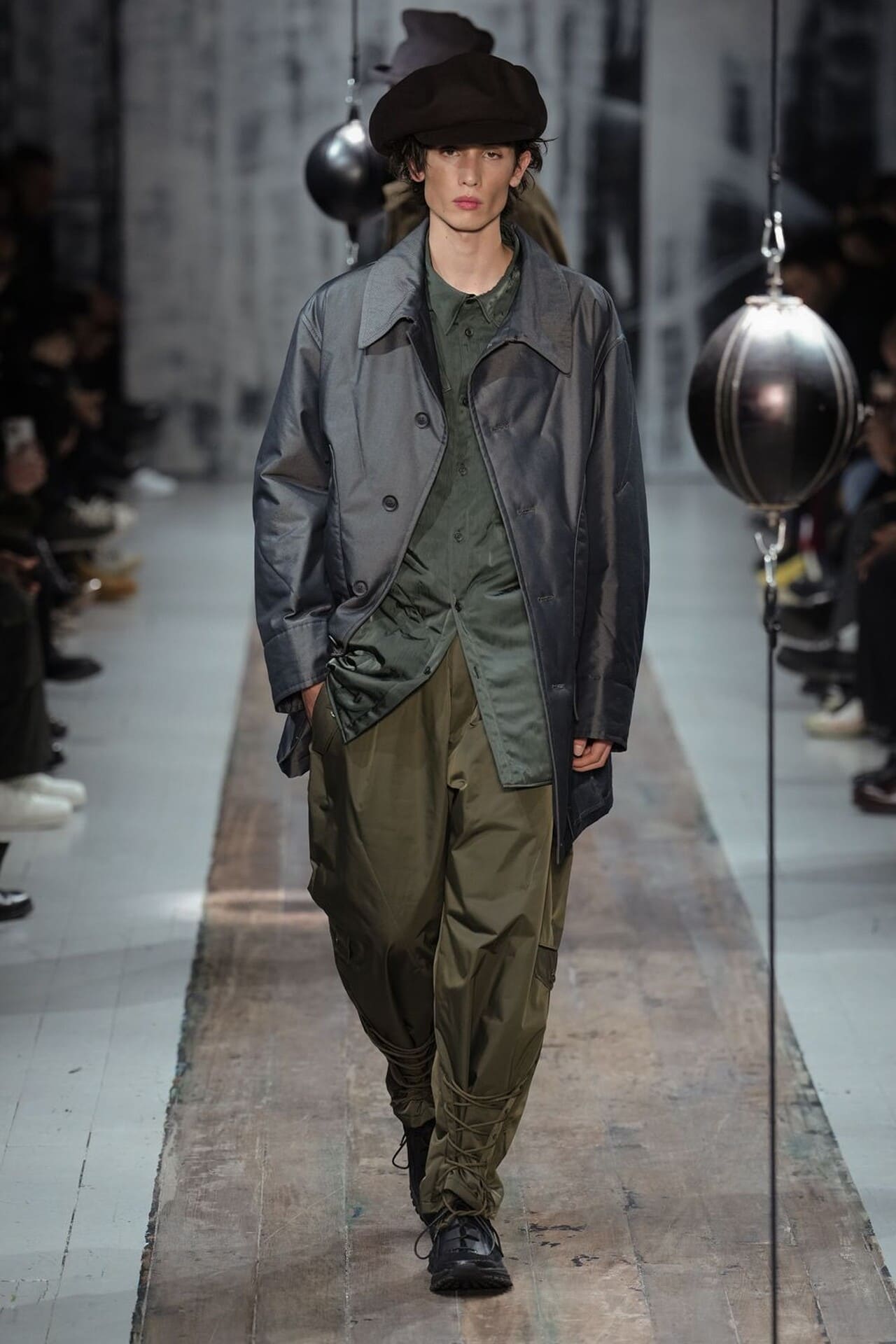 Особое внимание привлекли гигантские «надутые» ботинки и плащи-трансформеры из вощёной японской кожи. Сам Рик Оуэнс описал коллекцию Tower как «молитву о любви и надежде» в эти тревожные времена. В завершение шоу и вовсе прозвучали строчки Дэвида Боуи (We are the goon squad, and we’re coming to town…). Показ Рика Оуэнса стал пародией на милитаризм: по словам дизайнера, в «шоу-нотах» он намеренно использовал агрессивные детали как «остроумную пародию».