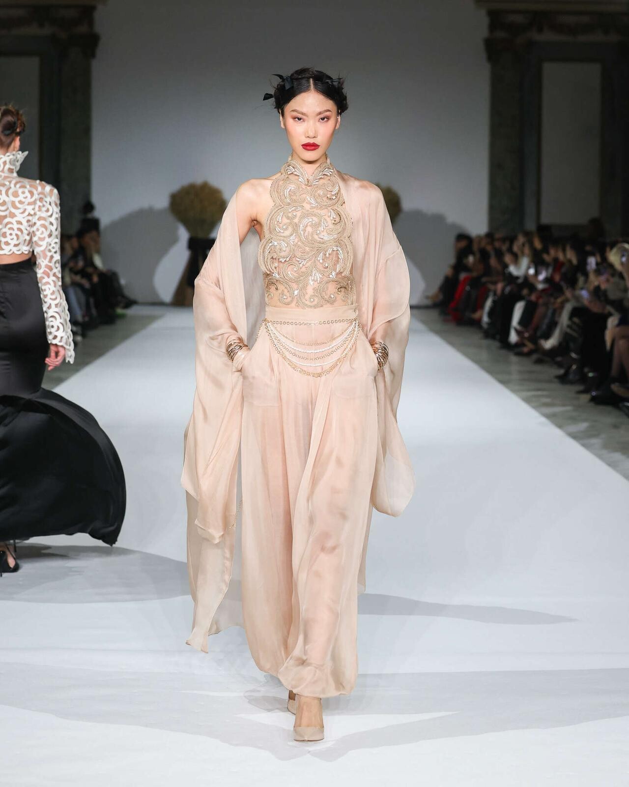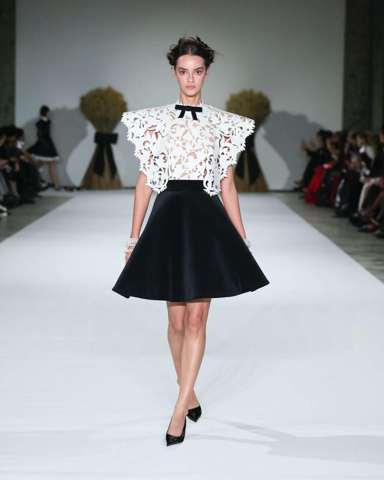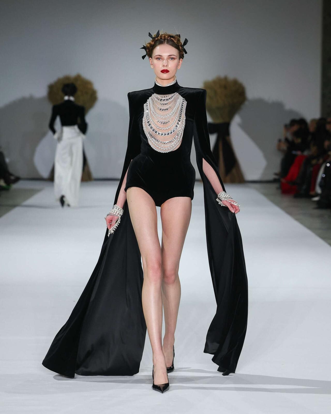 Помимо звездных домов, на Неделе высокой моды засверкали и молодые дизайнеры. Российский бренд YANINA Couture (Юлия Янина) посвятил коллекцию Габриэль Шанель и свободе духа. В коллекции много кукольных мотивов в чёрно-белой гамме, отсылающей к традиционной айдентике бренда Chanel. Есть в коллекции и откровенно восточные мотивы: брюки-аладдины из тонкого шёлка, накидки-абайи и украшения, ниспадающие на лоб моделей. В общем, вышло что-то среднее между Востоком и Западом. Интересное комбо.