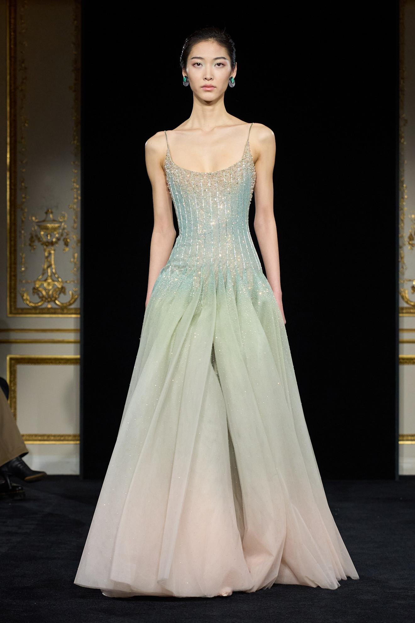 Для Armani Privé это была первая кутюрная неделя после смерти основателя Джорджио Армани. За «штурвалом» бренда сейчас стоит его племянница Сильвана, которая проработала с дядей много лет и переняла стиль именитого родственника. Конечно, её дебютную коллекцию с трудом можно назвать свежей. В кутюрной коллекции появились узнаваемые знаки дома: мягкие платья с ручной вышивкой, женские смокинги и сине-голубые акценты. Коллекция получилась спокойной, беззубой и очень элегантной. Вряд ли образом «Амазонки» в смокинге можно удивить кого-то в наше время, но такие луки стали эталоном вечерней моды. Armani Privé напомнил о традициях скульптурного кроя, но на фоне пышных постановок других домов показался несправедливо затенённым.