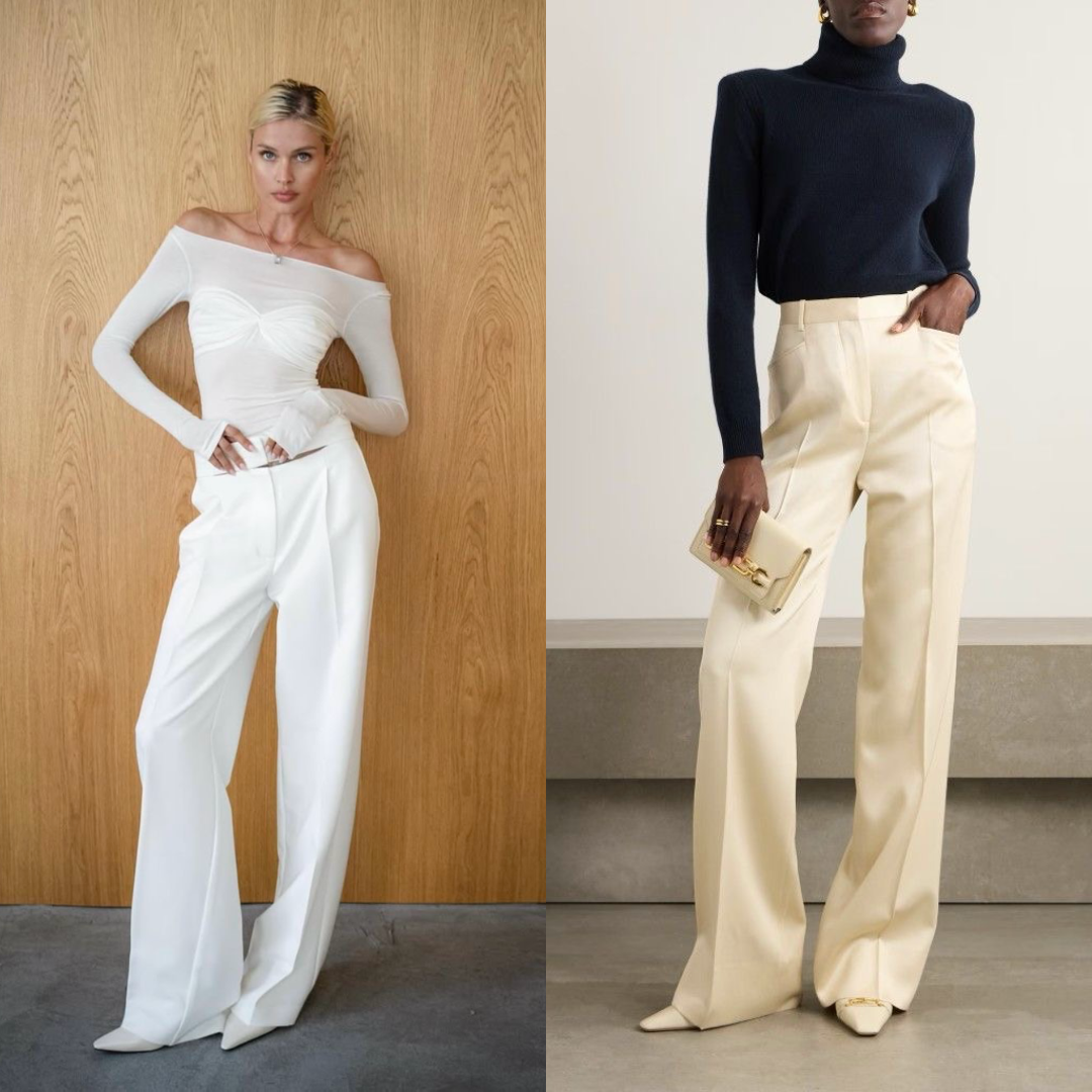 Запомните золотое правило: короткий или облегающий верх + высокая посадка. Это один самых эффективных способов создать иллюзию тонкой талии. Укороченный жакет, кроп-топ или аккуратно заправленный лонгслив в сочетании с высокой посадкой низа формируют правильное соотношение длины ног и тела. Важно, чтобы между верхом и низом не оставалось много воздуха, дабы не создать горизонтальную линию в зоне живота. В паре с брюками или юбкой высокой посадки такой прием работает безотказно.