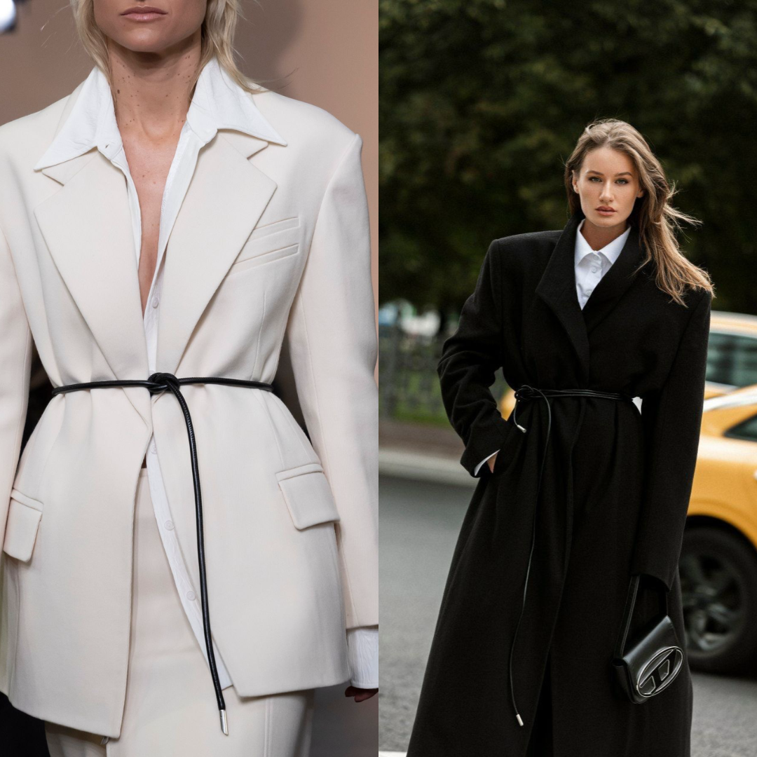 Один из самых стильных и простых приемов в нашей подборке – подчеркнуть талию с помощью ремня-жгута. Такой аксессуар идеально подходит, чтобы дополнить им шубу, пальто или жакет. Выбирайте кожаные или замшевые модели: такие смотрятся благороднее. Этот трендовый способ добавит изюминку к любому образу.