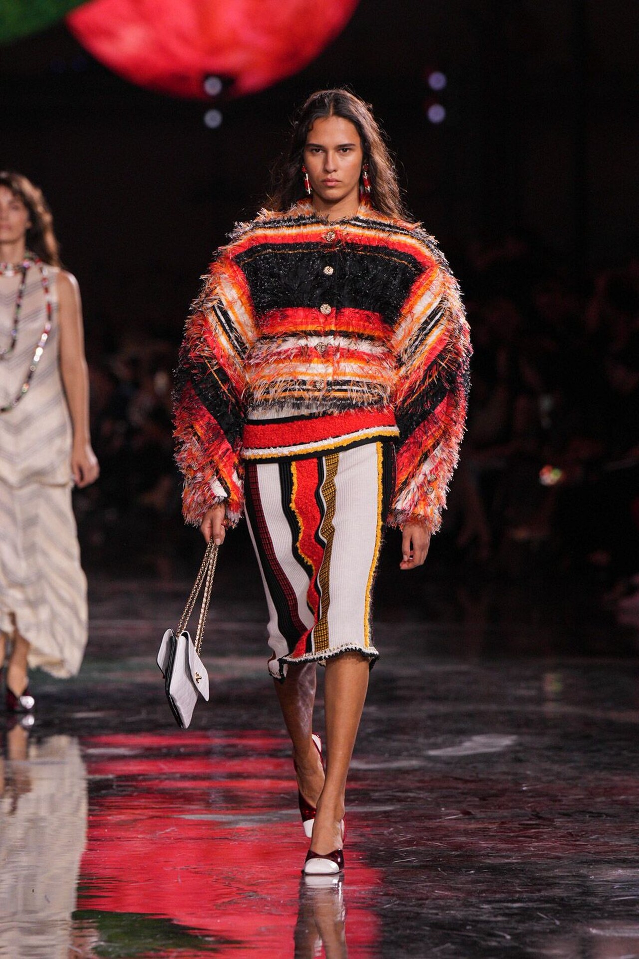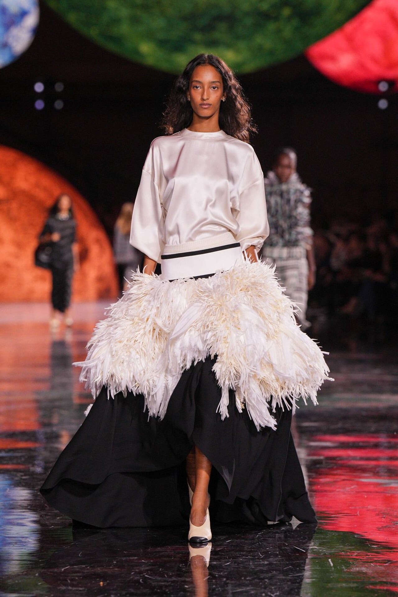 Первый показ Матье Блази в роли арт-директора Chanel также превзошёл ожидания. Дизайнер сохранил фирменные составляющие: твид, бисер и силуэтные воротники – но сделал образ «Шанель» более свободным и цветным. В коллекции Блази на замену лаконичному строгому классическому дресс-коду пришли игривые детали: твидовые жакеты и костюмы дополняли яркие аксессуары и насыщенная палитра тканей, что вернуло бренду дружелюбную лёгкость. На показе мы увидели заигрывания с фактурой, перья, сложный крой юбок. Шоу прошло в Гран-Пале, преобразившемся в футуристическое «звёздное небо»: организаторы подвесили к потолку светящиеся планеты, а цветовое оформление сцены подчёркивало мягкую гамму новых нарядов. Музыка «Щелкунчика» Петра Чайковского связала прошлую и новую эпохи Дома – от наследия самой мадам Коко до современной интерпретации. Кажется, коллекция Блази стала мостом между традицией и новаторством: она предложила романтическую «гламурную лёгкость» Chanel, отзвучавшую как коллаж из балетной классики и авангардного настроения.