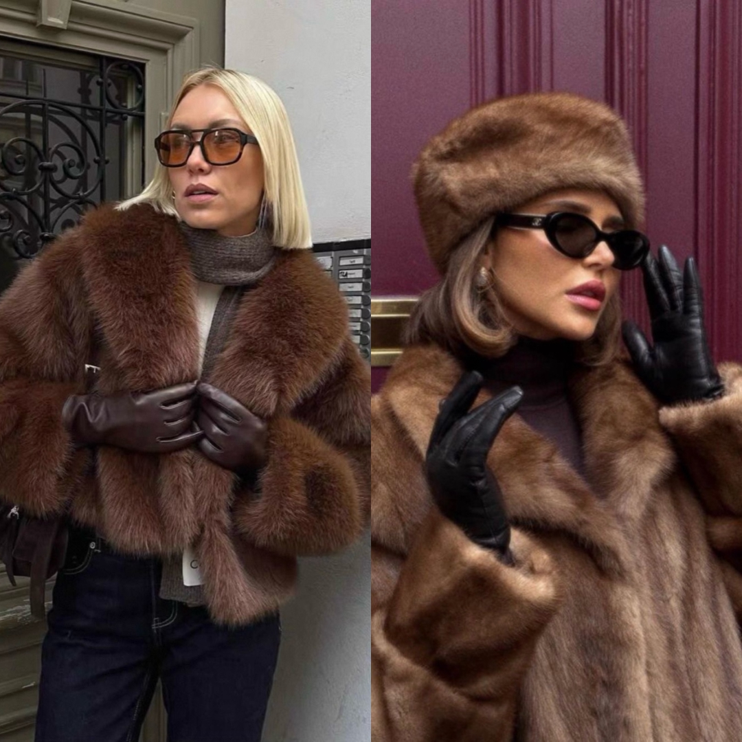 Сочетание меха и кожаных перчаток выглядит просто роскошно. Если нужен эффект «дорого-богато», используйте именно этот дуэт. Кстати, в стилизации с сапогами на небольшом каблуке образ станет еще более статусным.