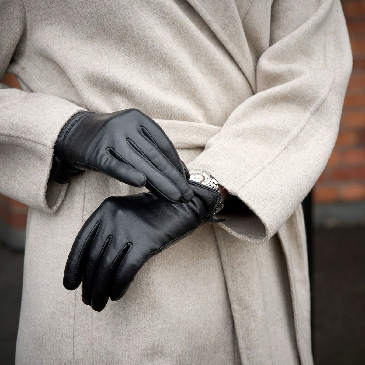 И все-таки не стоит забывать про классический черный цвет, если вы ищете универсальный вариант перчаток. Такой аксессуар может быть сделан из любого материала, потому что сам оттенок уже придает модели практичность, позволяя сочетать с абсолютно любым образом.