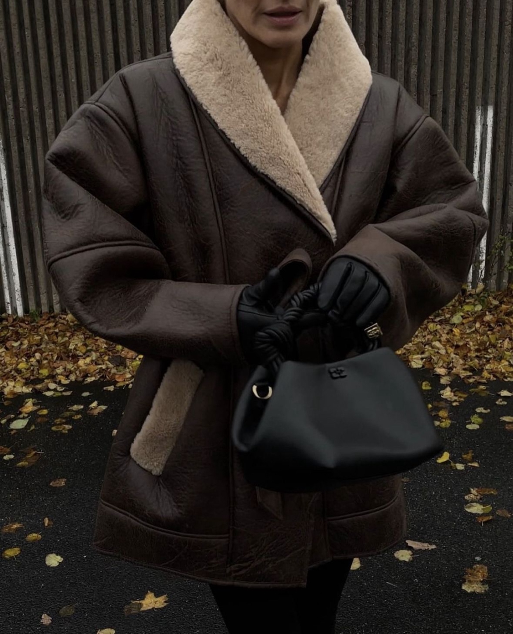 С дубленками прекрасно смотрятся замшевые и шерстяные модели. Благодаря сочетаниям фактур получается интересный образ, который хочется рассматривать.