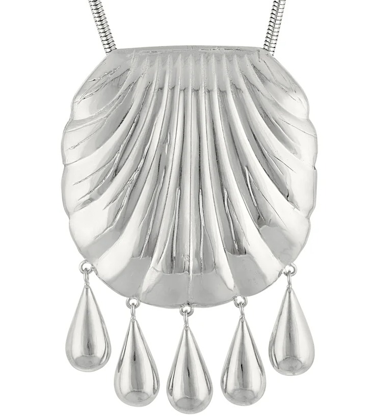 Поддержать хиппи-образ можно ещё и аксессуарами. Серьёзный всплеск спроса переживает жемчужно-ракушечное ожерелье Petra Shell нью-йоркского бренда Juju Vera. Оно – часть тренда этого лета, который переходит с нами в осенний период: металлическое украшение в натуральном природном стиле с крупной ракушкой и жемчугом, выпадающим из неё. Маркетологи отмечают: спрос на такие ожерелья связан с ностальгией по морю и отпуску, а также с общим желанием оживить простые образы выразительной «пляжной» деталью. В итоге гипертрофированная ракушка на шее заняла своё почётное седьмое место в топе.
