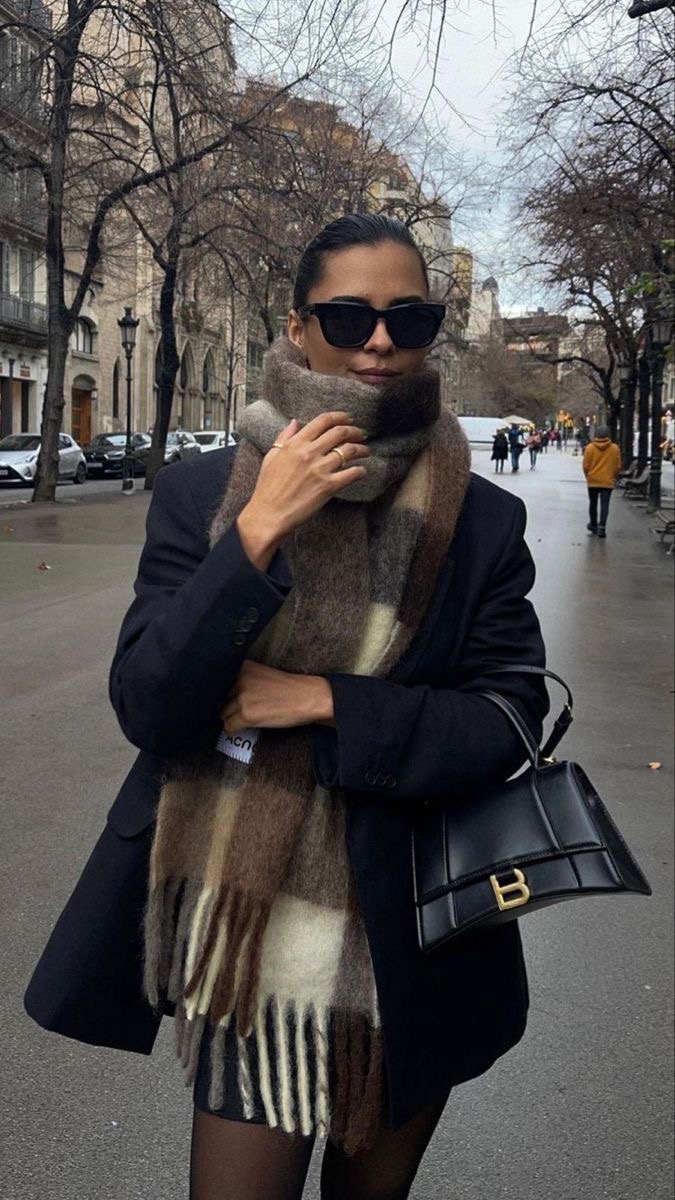 Для тех, кто не готов обзавестись одеждой с клетчатым принтом, подойдет самый осенний аксессуар – теплый шарф. Идеально, если он будет двусторонним, то есть с одной стороны однотонным, а с другой – в клетку, чтобы можно было выбирать сторону по настроению. Добавляйте его к однотонному пальто или куртке с джинсами и графичными ботинками.