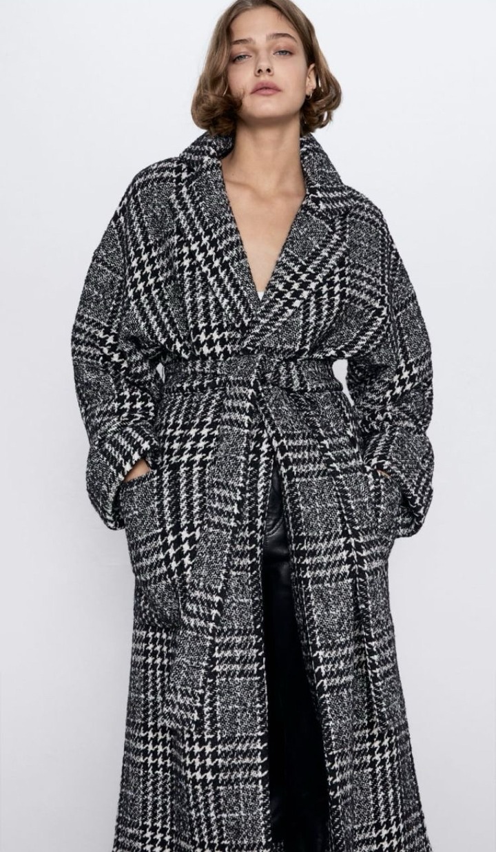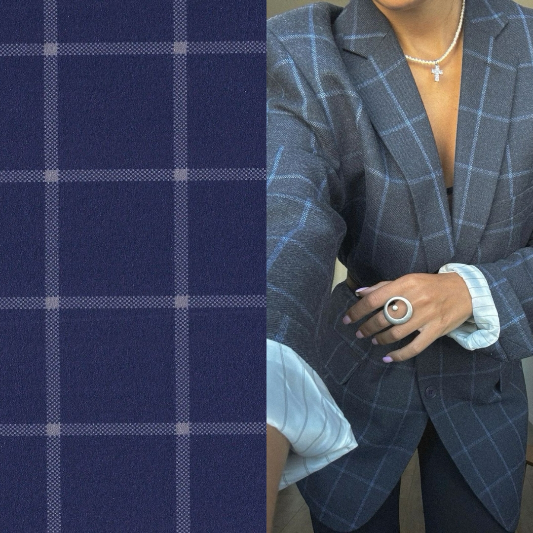 Это крупная клетка с четкими, контрастными линиями, напоминающими оконные рамы. Выглядит структурно, графично и придает образу строгость. Особенно эффектно этот принт смотрится на пальто, блейзерах и широких брюках, благодаря тому, что четкие линии создают визуальный акцент.
