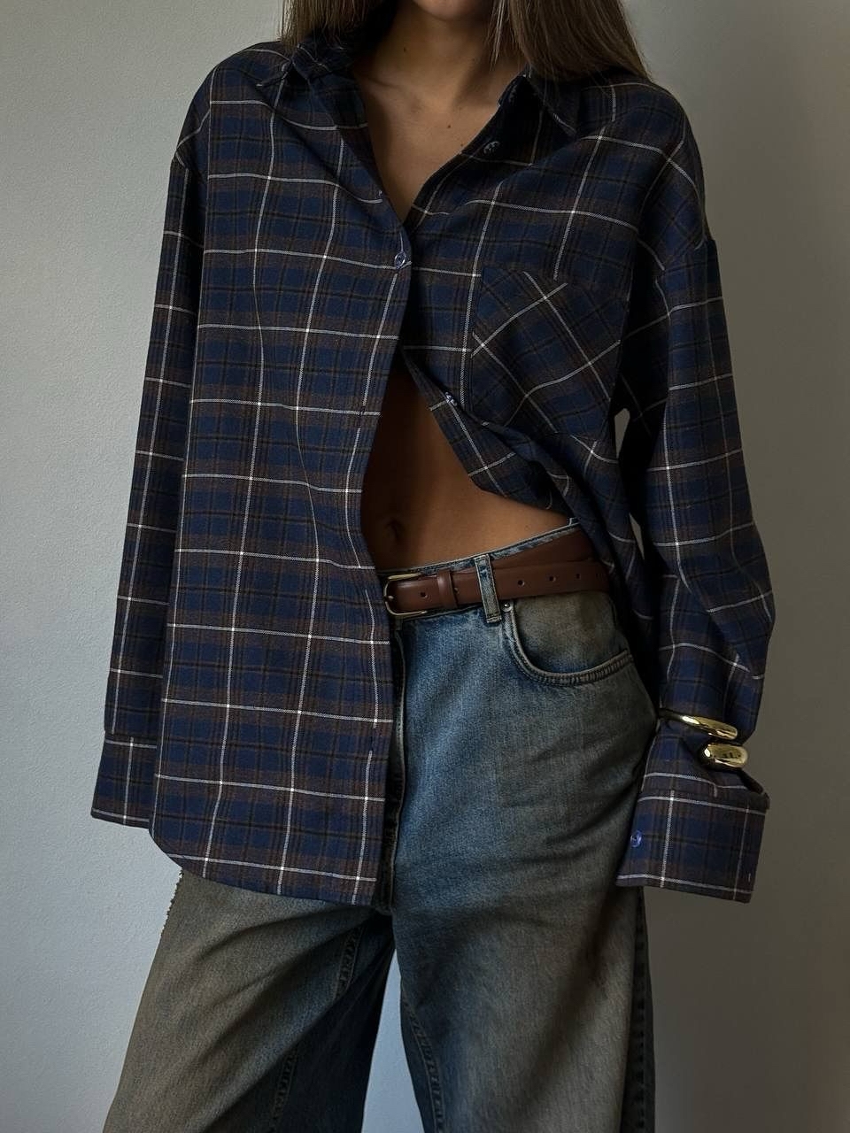 Этот союз проверен временем. Клетчатая рубашка или пальто в паре с денимом создают расслабленный, но при этом собранный образ. Чтобы лук выглядел свежо, выбирайте чуть более светлую клетку и дополняйте джинсами в приглушенных осенних тонах.