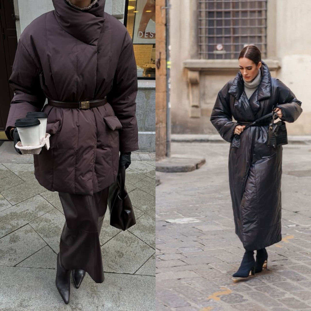 Пуховик-халат, пожалуй, одна из самых удачных пар для юбки зимой. Его удлиненный силуэт создает комфорт и защищает от ветра, а пояс визуально формирует талию, делая образ еще более женственным даже в объемной верхней одежде. Такой пуховик отлично смотрится с трикотажными миди-юбками, моделями на запах или А-силуэтами. Добавьте высокие сапоги или утеплённые ботинки – и получится стильный повседневный образ.