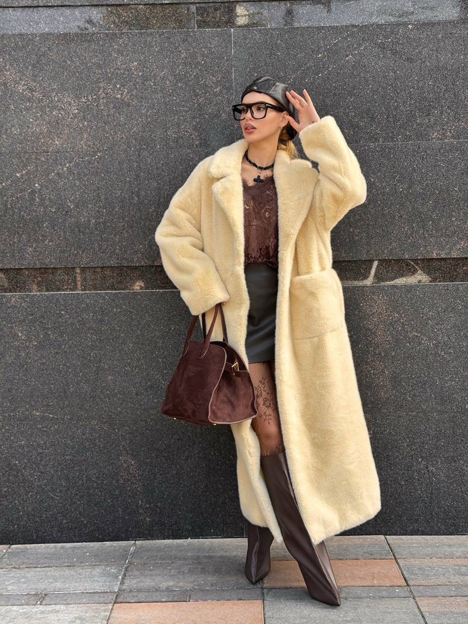 Длинная шуба — просто идеальный спутник юбок в мороз. Она закрывает ноги до середины голени или ниже и создает эффект «укутанности», который делает образ одновременно теплым. К тому же лук с шубой всегда смотрится роскошно. В качестве обуви выбирайте сапоги на устойчивом каблуке, чтобы получить элегантный зимний образ с ноткой шика.
