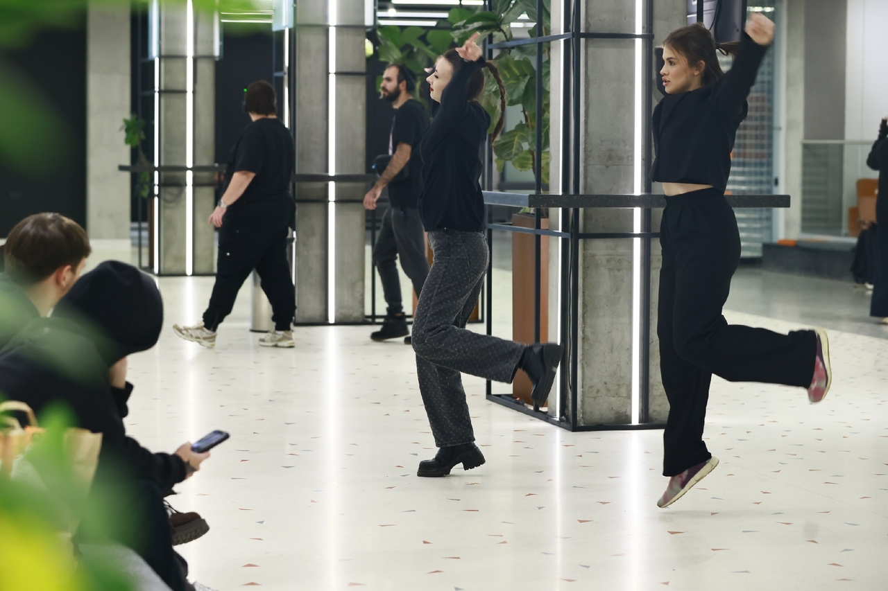 Целый второй этаж казанского IT-парка им. Башира Рамеева заполнили зумеры: участники GA-GALA BATTLE спали на диванчиках, скакали по сцене, пели в коридорах (занимались подготовкой к шоу). В интервью многие говорили, что их выступления будут массовыми, но мы не думали, что настолько: часть команд привлекла для своих блоков танцоров и многочисленную массовку (хотя в самих командах было в среднем по пять участников) — в зале и переговорках было, мягко говоря, тесно. В час случился генеральный прогон — все 10 команд показали перед организаторами окончательно собранную программу, а редакторы сделали последние замечания. На бекстейдже стало ещё теснее: приехала команда волонтёров — они курировали встречу и передвижение зрителей, организацию порядка за сценой, тайминг и всё остальное. Мы хотим сказать ребятам огромное спасибо: если бы не вы, шоу не прошло бы на таком уровне.. В толкучке сновал SMM-отдел GALA, записывая мини-визитки участников — их можно посмотреть в нашем телеграм-канале.