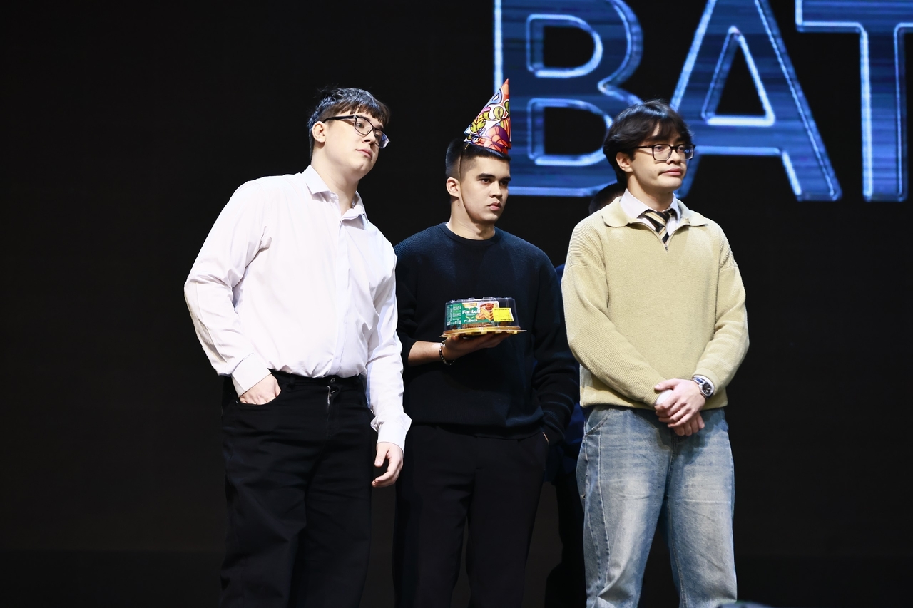 Вторая часть GA-GALA BATTLE — это, собственно, сам баттл. Студенты пытались в рэп. Задачу усложнили — он должен был быть смешным. Визуально выглядело шикарно: сцену разделили между командами, поставили реквизит, направили свет. Иногда диссы обрушивались на личности, иногда на команды целиком, но получилось вполне забавно, учитывая, что только один из участников всего GA-GALA BATTLE занимается этой музыкой и выпускает треки (это Наиль из «Хасан Туфан»).