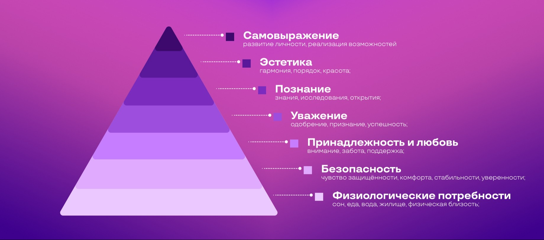 — Вспомним пирамиду потребностей Маслоу: в основании её находятся обычные физиологические потребности (еда, жильё, секс), а духовные уже наверху. Иными словами, если придерживаться этой теории, о смысле жизни человек начинает думать, когда все другие, более низшие потребности удовлетворены и реализованы. Ведь если человеку есть нечего, он не будет думать о смысле жизни, а будет сосредоточен на заработке, чтобы удовлетворить элементарные запросы. А потом, когда с этим уже всё нормально, возникают более духовные вопросы, — объясняет психолог.